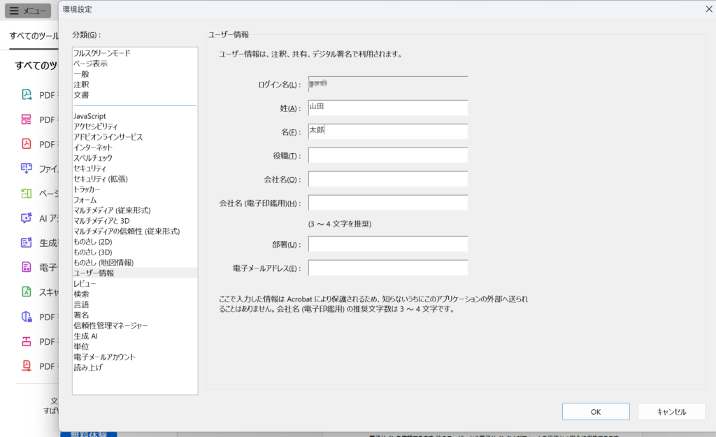 あまり使わないからこそ忘れてしまいそうなのでAcrobatの設定の備忘録。