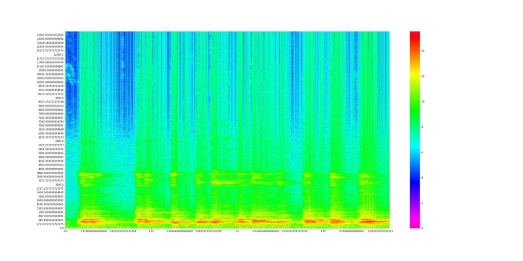 正直自分には全く区別がつかなかったので、そもそもテレビのスピーカーから流れる音に違いがあるのかどうか、音声スペクトラムで可視化してみることにしました。