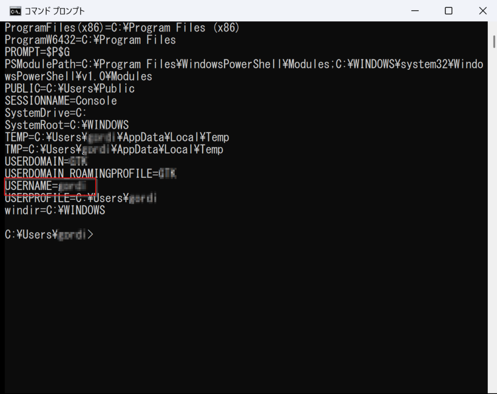 実行してみると USERNAME という項目があり、あなたのユーザー名が表示されているはずです。